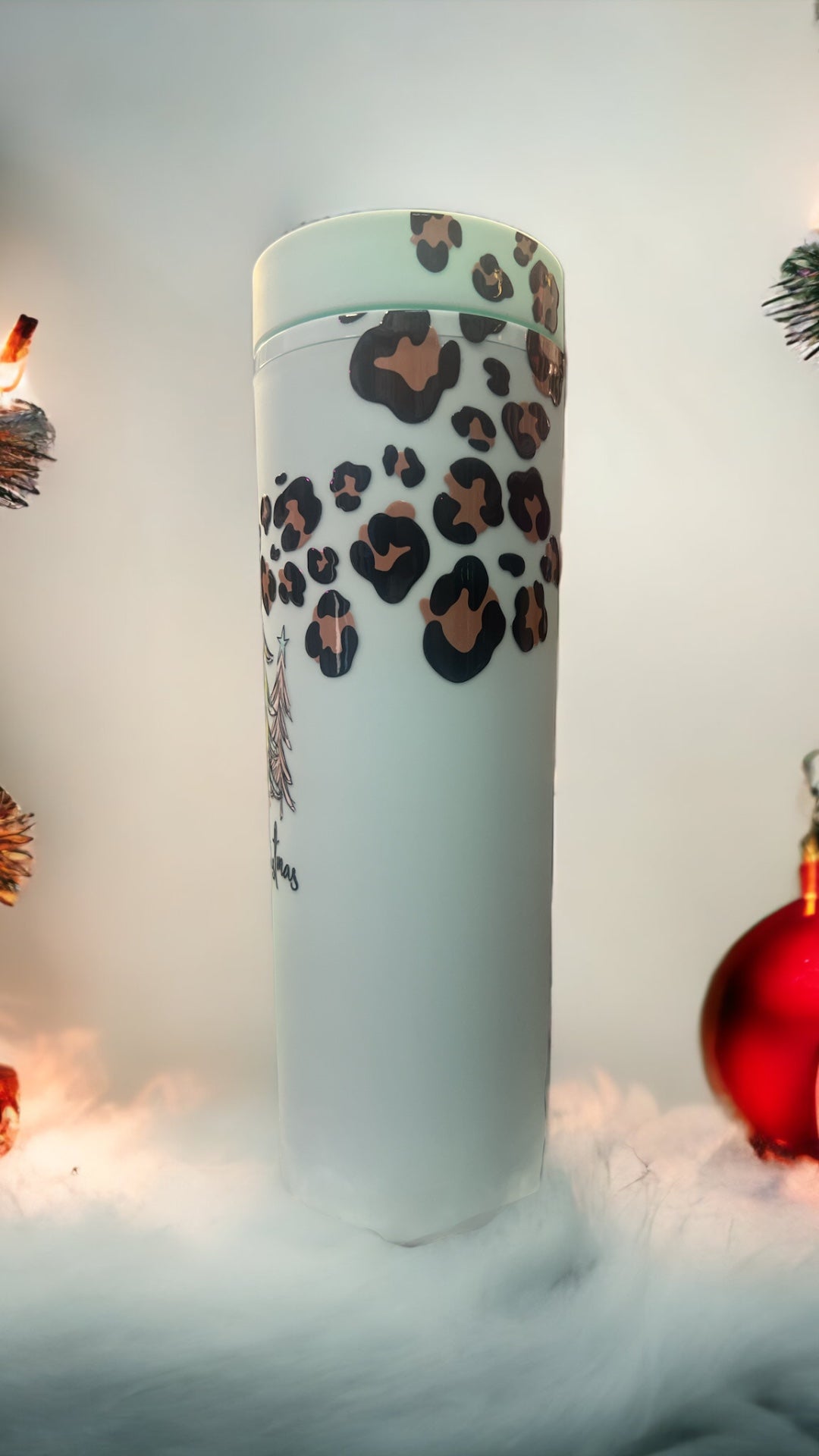 This 22oz. New Soft Matte Leopard Print Christmas Tree Tumbler is the perfect holiday companion. Its luxe soft matte finish and majestic leopard print make a bold statement, while its eye-catching Christmas tree motif adds a hint of festive cheer. Enjoy your favorite beverage in elevated style.
